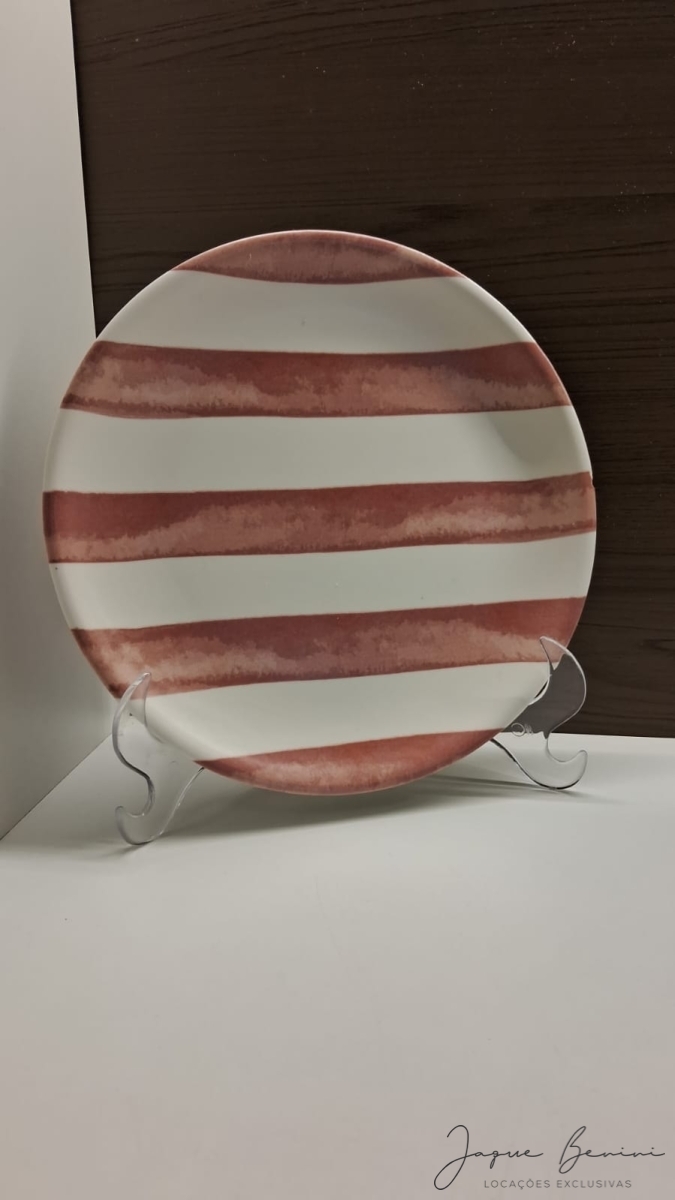 Alugue Prato Sobremesa Listrado Rosa para o seu evento. Além desse, você pode encontrar diversos outros itens excluvivos para decorar sua festa na Jaque Benini Locações Exclusivas.