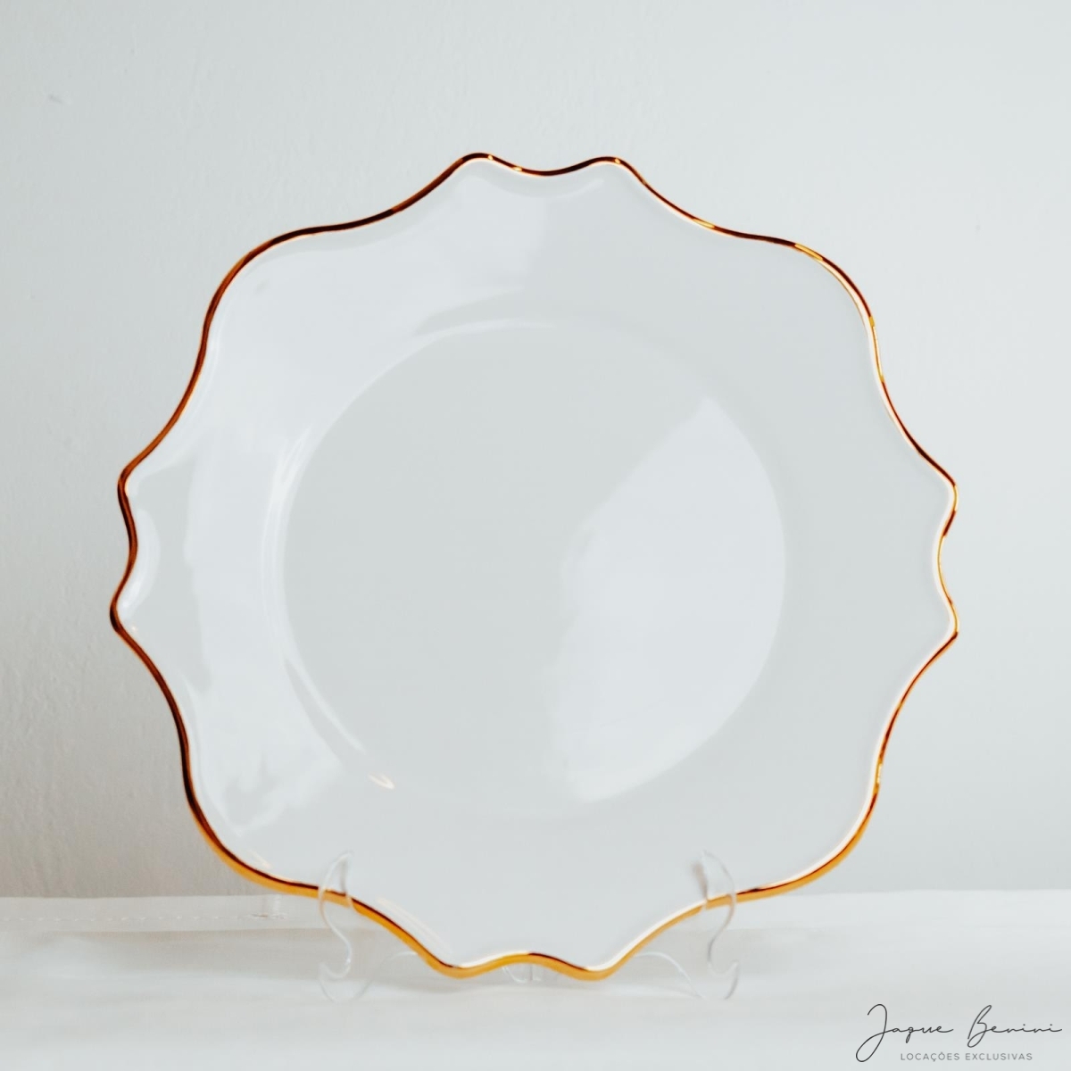 Alugue Sousplat Faisão Borda Dourada para o seu evento. Além desse, você pode encontrar diversos outros itens excluvivos para decorar sua festa na Jaque Benini Locações Exclusivas.