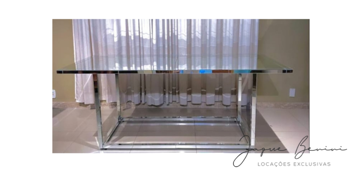 Alugue Mesa Clean Espelho para o seu evento. Além desse, você pode encontrar diversos outros itens excluvivos para decorar sua festa na Jaque Benini Locações Exclusivas.